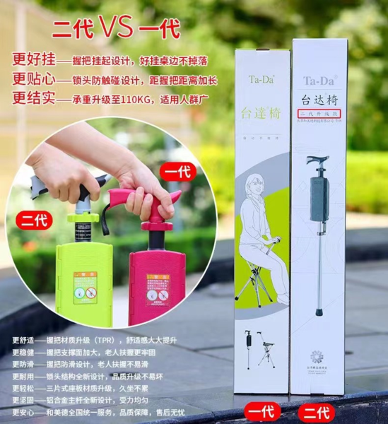 设计亮点 可折叠收纳凳子,加高折叠手杖凳可适用于高个子,出行好帮手,不用的时候可折叠收起不占用空间,是老人家必备利器。 不管老人还是年轻人,而这把手杖凳就可以在你登山、行走时,助你一臂之力,它的握把是根据人体工学设计,非常舒适,可以把它当做拐杖使用,登山更省力,还可防滑。如果遇到坏人,还可用来防身哦。专为老人以及行动不方便的人群设计,采用可折叠铝合金支杆,耐腐蚀,硬度高,不占用空间,折叠自如。凳面采用聚丙烯塑料,手感细腻,防滑舒适。整个座椅都具有抗锈防腐能力。安全耐用。欢迎大家入手买回家哦~